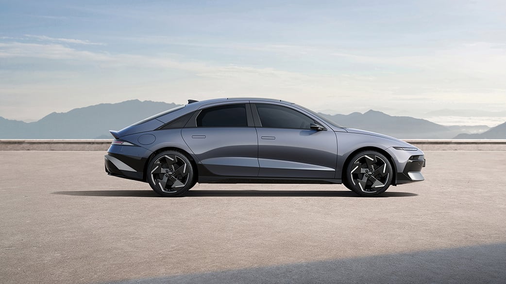 הנראות החיצונית של IONIQ 6 מציגה קווים נקיים ואלגנטיים שיוצרים נוכחות דינמית על הכביש.
